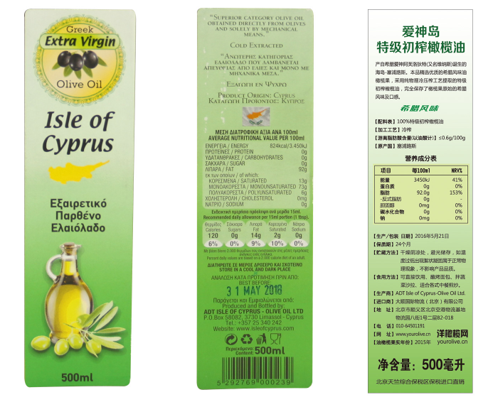 愛神島特級(jí)初榨橄欖油標(biāo)簽(樣例)