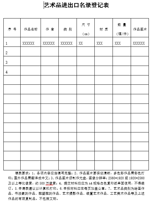 藝術(shù)品進(jìn)出口名錄登記表(模板)