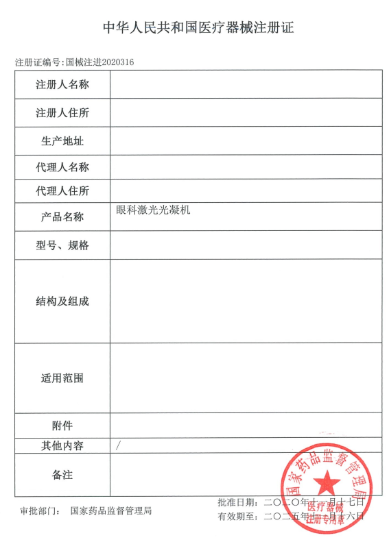 中華人民共和國(guó)醫(yī)療器械注冊(cè)證(樣例)