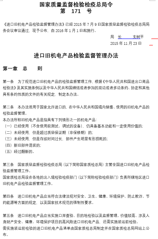 進口舊機電產(chǎn)品檢驗監(jiān)督管理辦法國家質(zhì)量監(jiān)督檢驗檢疫總局令
