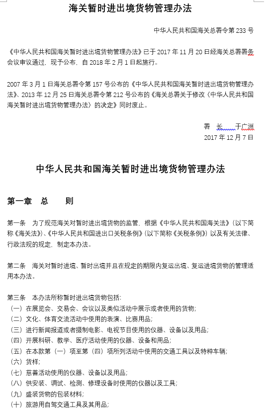 海關(guān)暫時進出境貨物管理辦法