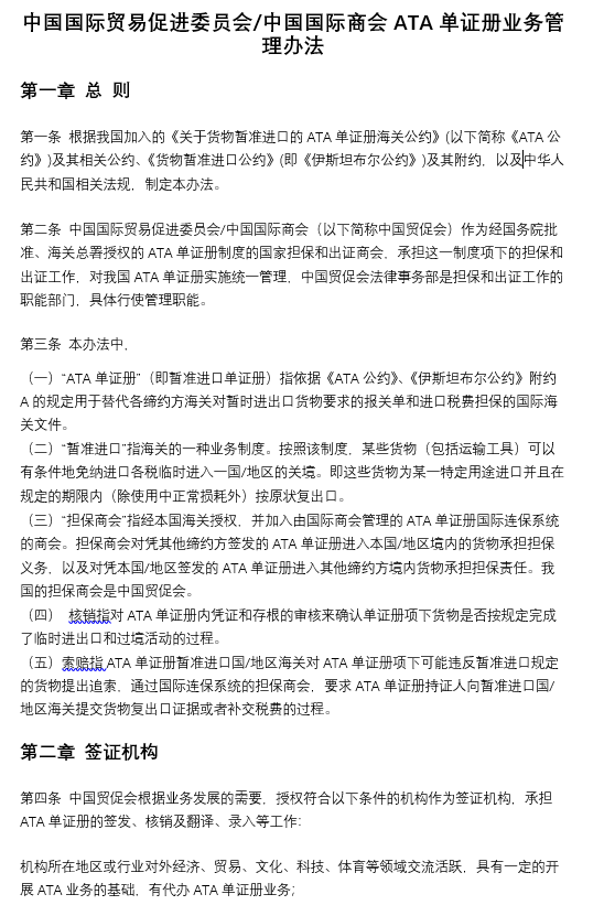 中國國際貿(mào)易促進委員會/中國國際商會ATA單證冊業(yè)務管理辦法