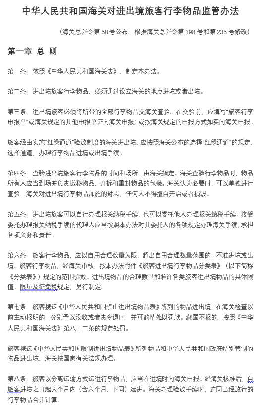 中華人民共和國海關(guān)對進出境旅客行李物品監(jiān)管辦法