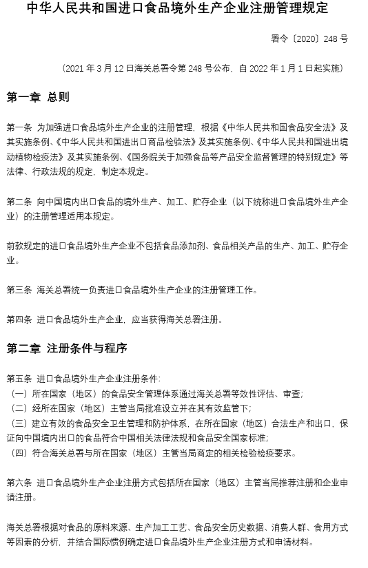 中華人民共和國進口食品境外生產(chǎn)企業(yè)注冊管理規(guī)定